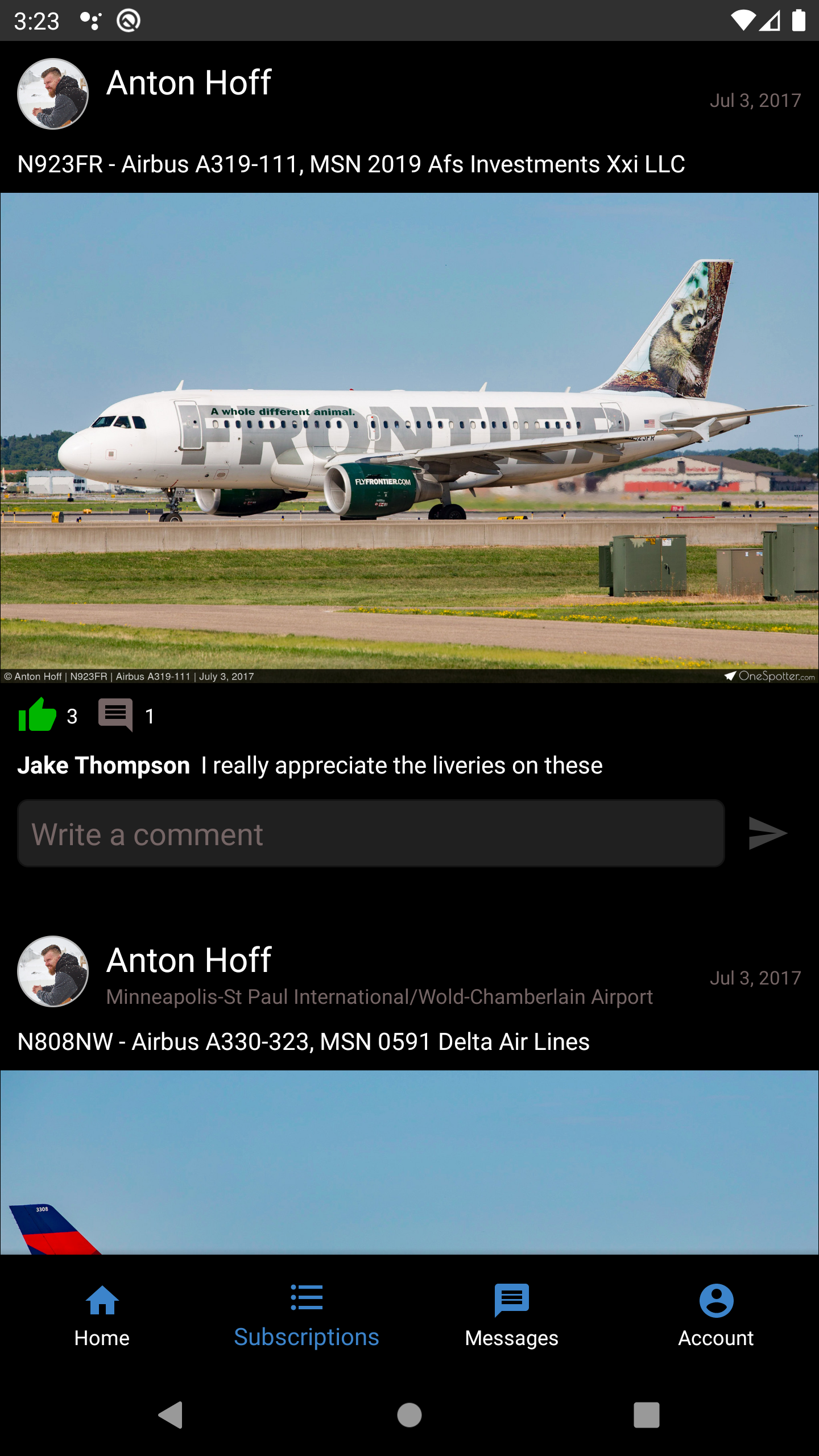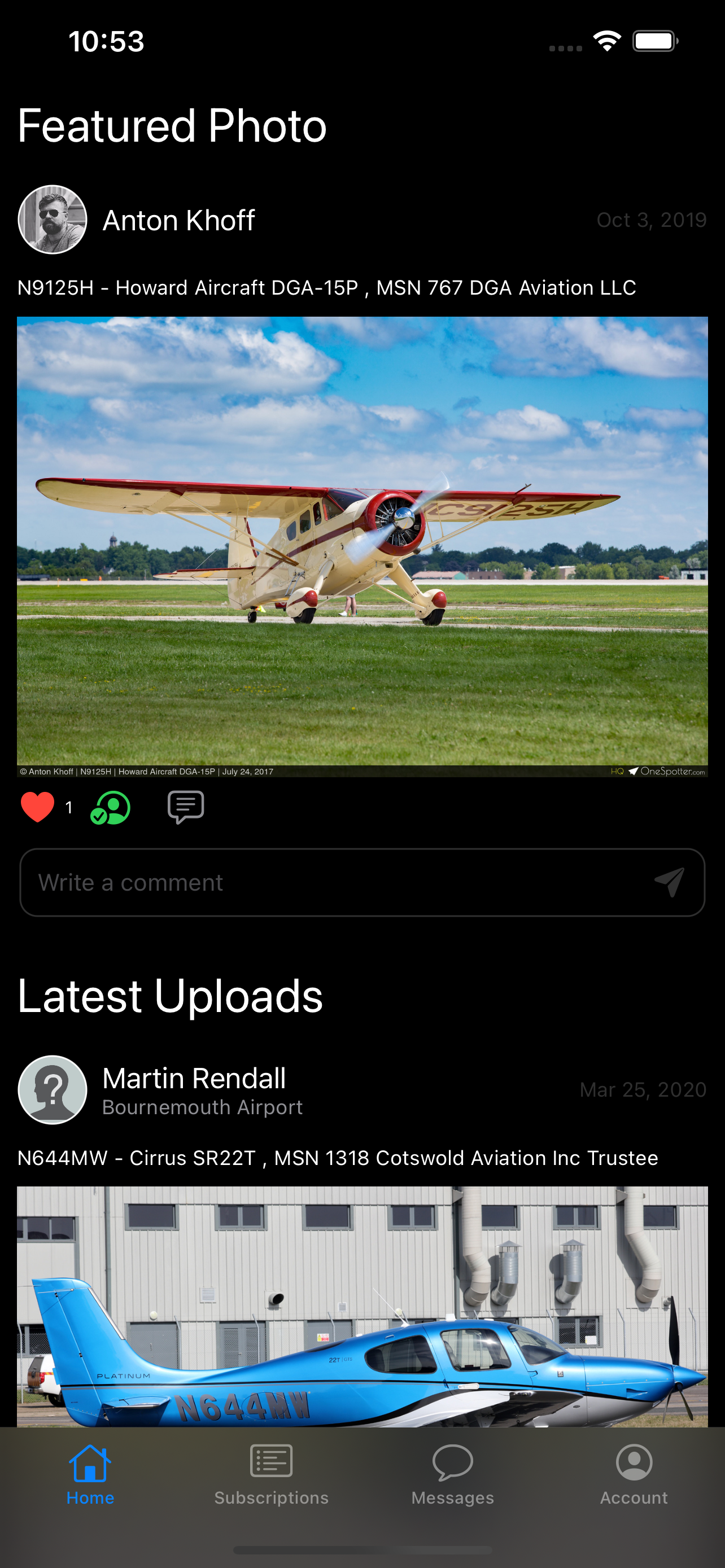 Look up aircraft information and its history. Browse photographs uploaded by the community members. Stay connected with your friends and the airplane spotting community. Our new app brings messaging capabilities to let you chat with other members of our OneSpotter community and gives you all of your favorite OneSpotter features, plus you can follow your favorite photographers and get your own personalized photograph feed of the pictures you want to see.